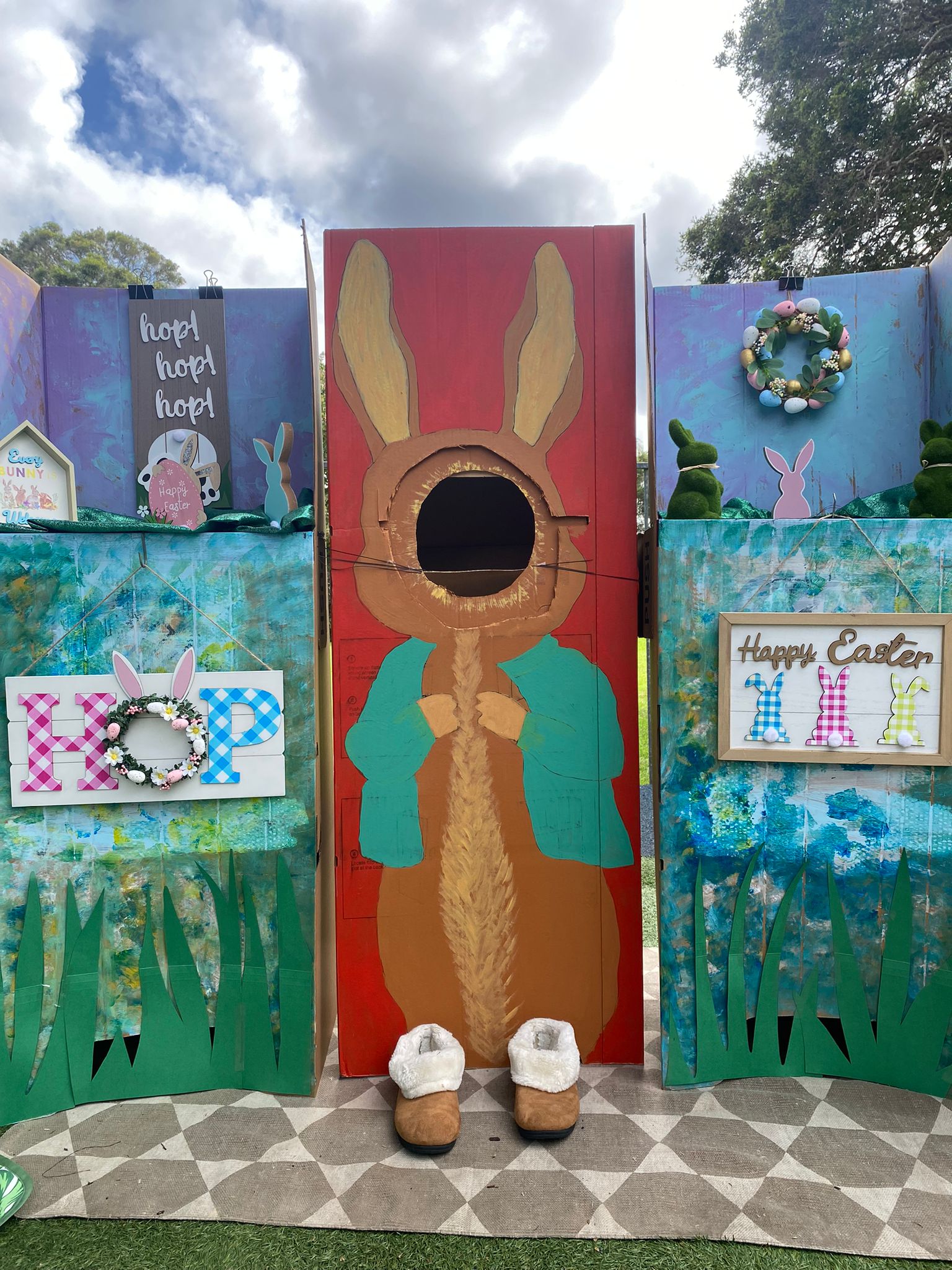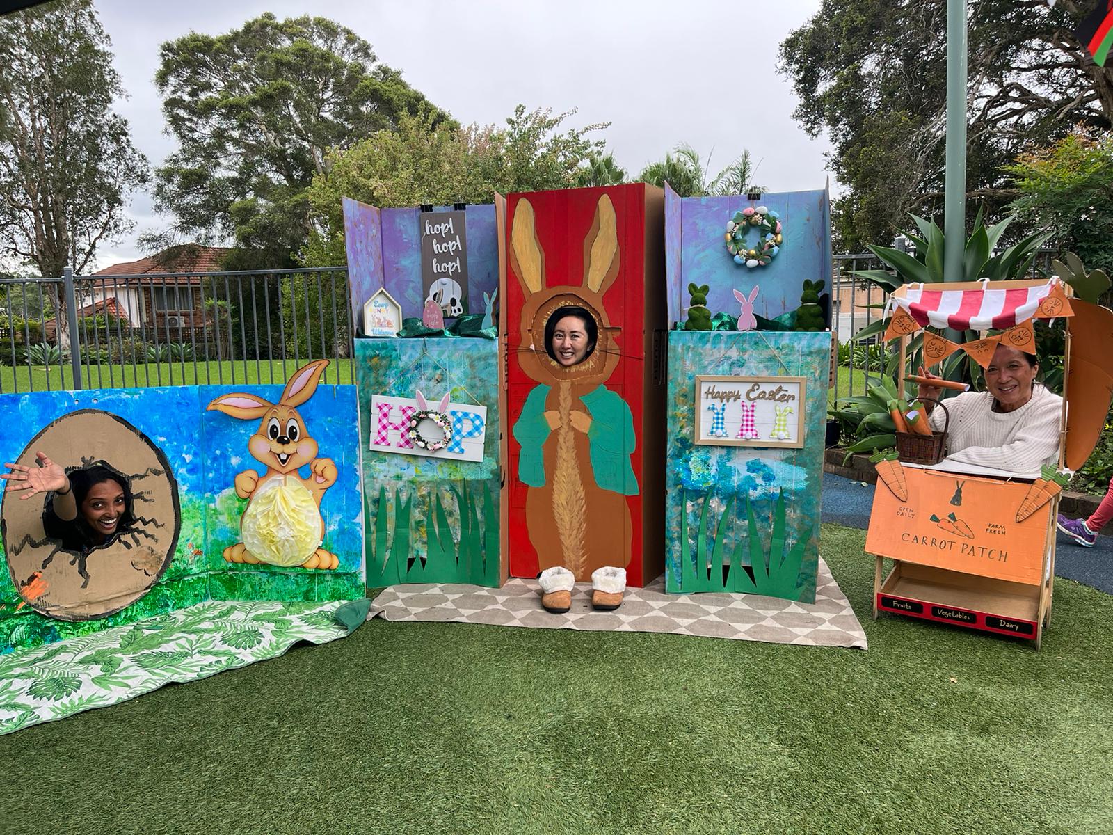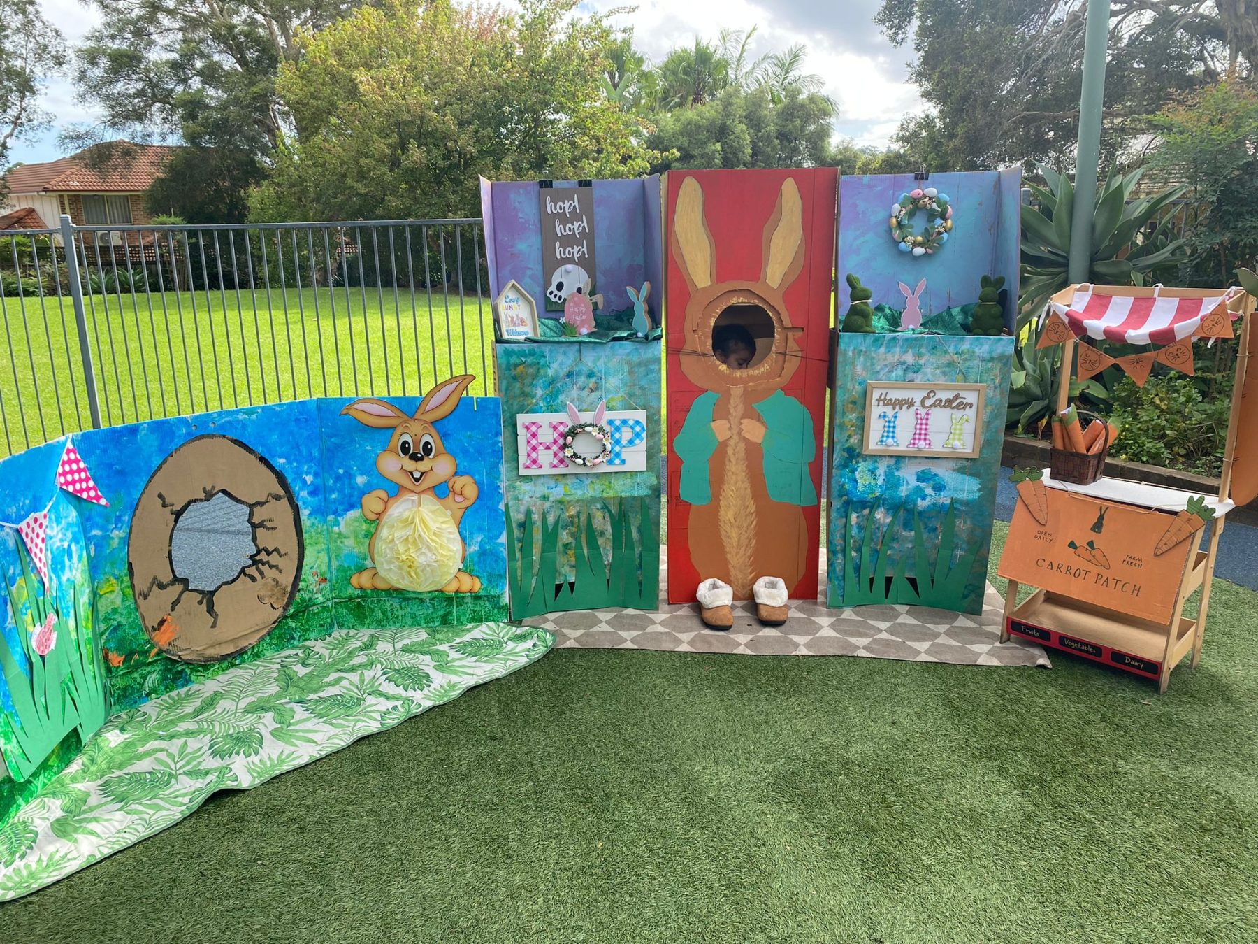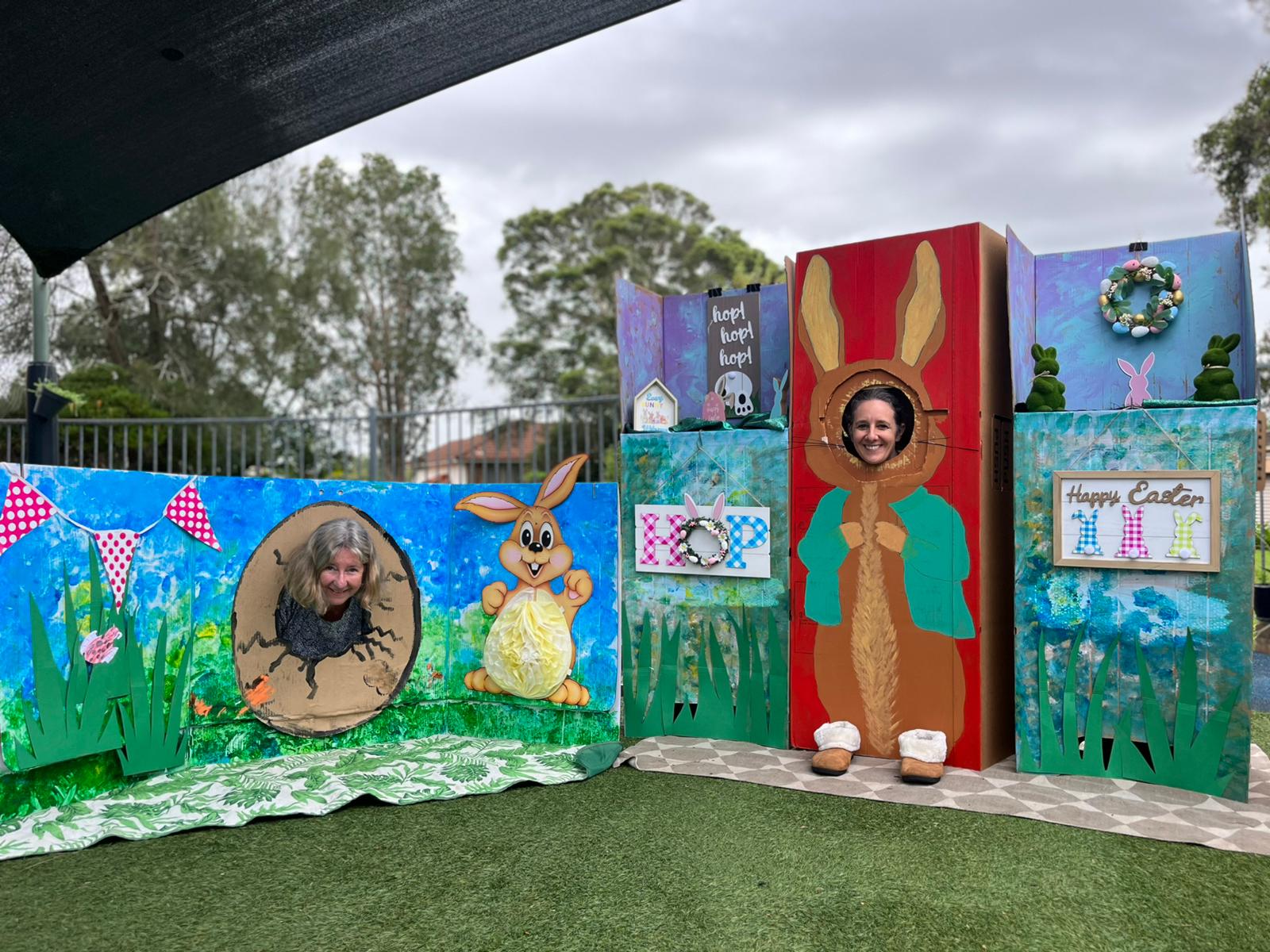 The children and outdoor learning educators recycled voting booths from the recent election to create a beautiful Easter photo booth experience for the children and staff to enjoy in the final week of Term 1. It was a wonderful way to celebrate the final week of term and thankfully the weather held out on most days to allow the children to enjoy this display with their friends.