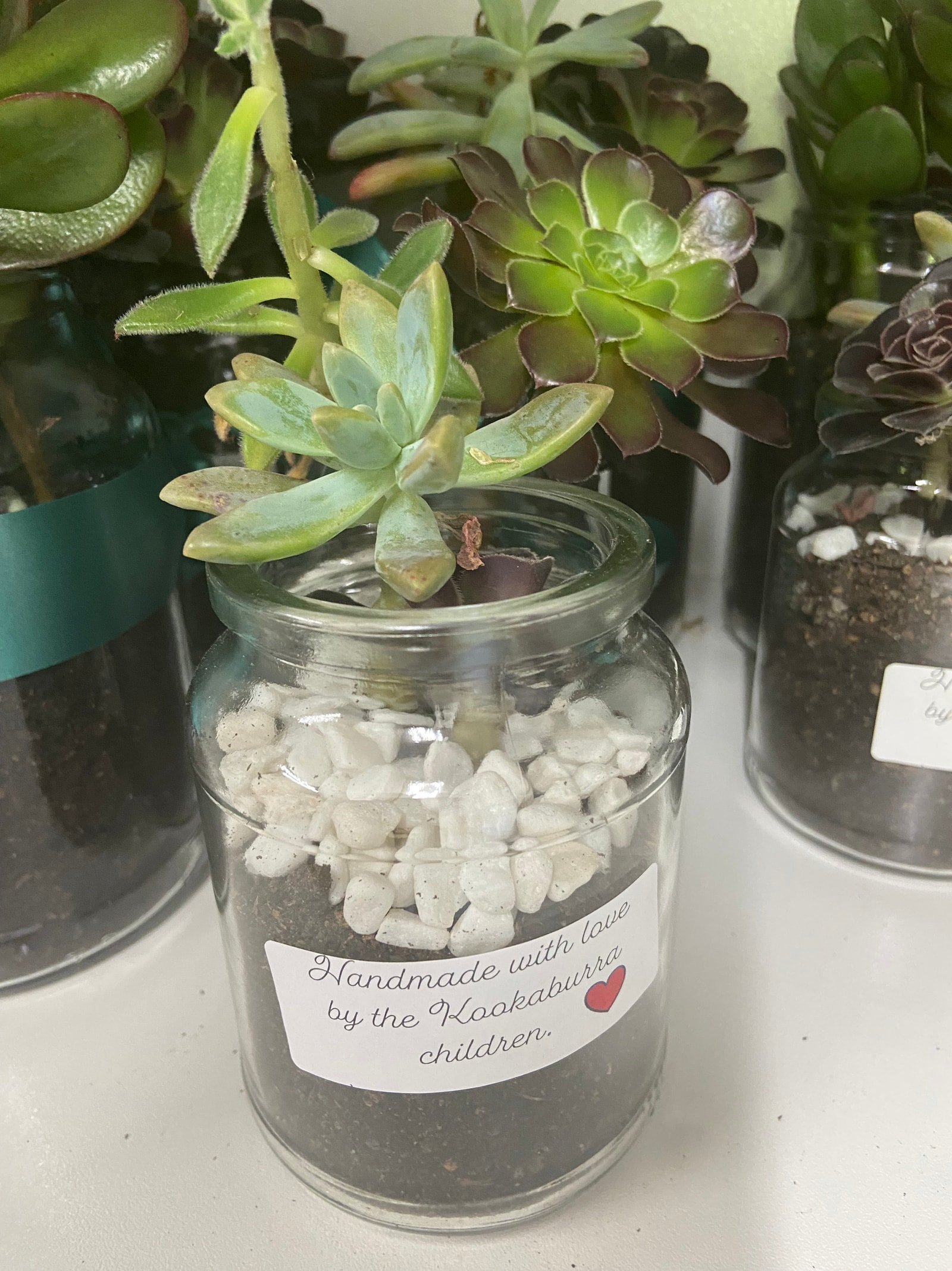 Each year towards the end of Term 4 our Kindergarten class hold a Kindy stall where each class contributes a variety of items they have created in their class for sale to raise money for the Kmart wishing tree. Items for sale this year included bees wax wraps, succulents, Christmas decorations, infused oil (from our garden), fudge, cookies & muffins. This year we were very fortunate to have two beautiful artworks donated by one of our very talented staff members and her friend which added to our fundraising efforts via a highly contested silent auction.